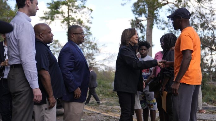 WASHINGTON (AP) — The devastation wrought by Hurricane Helene has brought climate change to the forefront of the presidential campaign after the issue lingered on the margins for months. Vice President Kamala Harris traveled to Georgia Wednesday to see hard-hit areas, two days after her Republican …