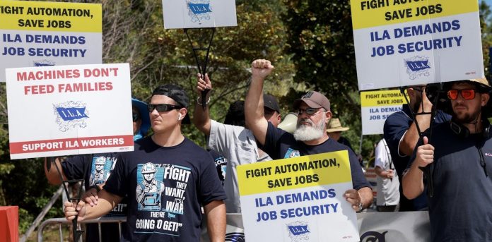 HomeMarkets Markets Dockworkers pause strike after Biden administration’s appeal to patriotism hits the mark By Ilene October 4, 2024 0 219 FacebookTwitterPinterestWhatsApp A dockworkers strike that froze operations at East Coast and Gulf Coast ports for 2½ days was paused on Oct. 3. The Conversation U.S. asked Anna …This post was originally published on this site Share FacebookTwitterPinterestWhatsApp Subscribe Login Notify of new follow-up comments new replies to my comments Please login to comment 0 Comments Inline Feedbacks View all comments Stay Connected149,711FansLike396,312FollowersFollow2,640SubscribersSubscribe Latest Articles Markets The Candor of Jerome Powell Markets Trump’s Venezuelan oil adventure is coming apart at the seams Markets Venezuela’s End: The Oil Question Markets Saudi-UAE bust-up over Yemen was only a matter of time − and reflects wider rift over vision for the region Markets Monday Market Mayhem – Trump Kicks it up a Notch Markets Stock market today: Dow, S&P 500, Nasdaq futures fall as markets react to DOJ investigation into Powell Market News War Profiteers Furious After Polymarket Refuses to Pay Out on Venezuelan Invasion Bets Market News “We’re Too Close to the Debris” AI Peter Thiel’s New Model Army Energy Trump Is Not Playing Five-Dimensional Chess in Venezuela Energy How markets have cashed in on Maduro’s capture in Venezuela – and why it’s raising questions AI Why Markets Keep Defying the Bears ~ ft. Josh Brown Energy The Emperor’s New Oil Wealth Markets Venezuela attack, Greenland threats and Gaza assault mark the collapse of international legal order Load more