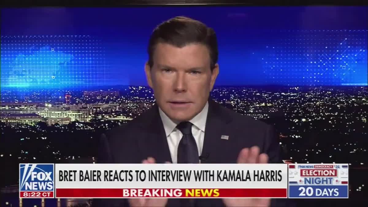 HomeMarkets Markets Bret Baier Whines That He Was Outfoxed By Kamala Harris By news October 18, 2024 0 107 FacebookTwitterPinterestWhatsApp After the big Fox News interview Baier apologized to Hannity viewers for letting her get her “viral moment.” If you want to know how the interview …This post was originally published on this site Share FacebookTwitterPinterestWhatsApp Subscribe Login Notify of new follow-up comments new replies to my comments Please login to comment 0 Comments Inline Feedbacks View all comments Stay Connected149,507FansLike396,312FollowersFollow2,650SubscribersSubscribe Latest Articles Markets Thursday Thoughts – Oil at $66.6 Again – Bad Sign? Market News Japan’s Debt Crisis Is Just the Beginning Biotech FDA’s abrupt flip-flop on Moderna’s mRNA flu shot highlights growing risks to drug-makers of investing in vaccines Market News Fed Minutes Show No Rush to Restart Rate Cuts, and Even Possibility of Hikes Climate Why big oil is not interested in Venezuela Markets Which Way Wednesday? Markets, Media, and Income in the AI Era Biotech Update: Moderna says the FDA will consider its new flu shot after resolving a public dispute Market News Japan Sees the Writing on the Wall Market News No, It’s Not Back to Business as Usual Markets The Price of Admission to Epstein’s World: Silence Markets PhilStockWorld Febuary Portfolio Review (Members Only) Markets 🏰 The AGI Round Table: Mid-Month State of the Union – Day 47 of 2026 Charts Hedge funder Philip Davis walks though the HEAT Formula AI Axios: Pentagon threatens Anthropic punishment Load more
