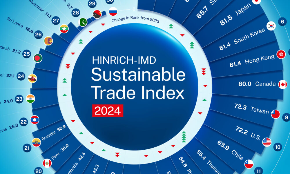 HomeMarkets Markets Ranked: The World’s Most Sustainable Economies in 2024 By news October 22, 2024 0 175 FacebookTwitterPinterestWhatsApp This infographic from the Hinrich Foundation introduces the 2024 edition of the Sustainable Trade Index (STI). The STI is an annual ranking of 30 …This post was originally published on this site Share FacebookTwitterPinterestWhatsApp Subscribe Login Notify of new follow-up comments new replies to my comments Please login to comment 0 Comments Inline Feedbacks View all comments Stay Connected149,483FansLike396,312FollowersFollow2,650SubscribersSubscribe Latest Articles Markets The Truth You Can Buy: How Prediction Markets Became Democracy’s Newest Threat Markets State of the Market Tuesday – 6 Fed Speakers, HD, HPQ and Trump as We Wait for CRM and NVDA Markets What Travelers Need to Know as Cartel Violence Rattles Mexico News The NYPD Arrested Epstein. Then the FBI Intervened. Market News Trump Secretary Silent as Sons Poised to Make Bank From End of Tariffs Markets AGI Round Table Special Report: The 2028 Global Intelligence Crisis Top Trades PhilStockWorld Top Trade Alert – Feb 23rd 2026 – Blue Owl Capital (OWL) Market News What’s Happened Since the Supreme Court’s Tariff Ruling Markets Monday Market Mayhem – Schrodinger’s Tariffs Cause Confusion Market News Mexico killed “El Mencho.” Here’s how and what we know about U.S. role Markets Ukraine Has Passed a Point of No Return Markets Ro Khanna Is Shaken by What He’s Learned From the Epstein Files Hot Items Putin’s shadow fleet could be wiped out in 2-3 months Markets What I Learned at PhilStockWorld.com Last Week – An AGI Round Table Review Load more