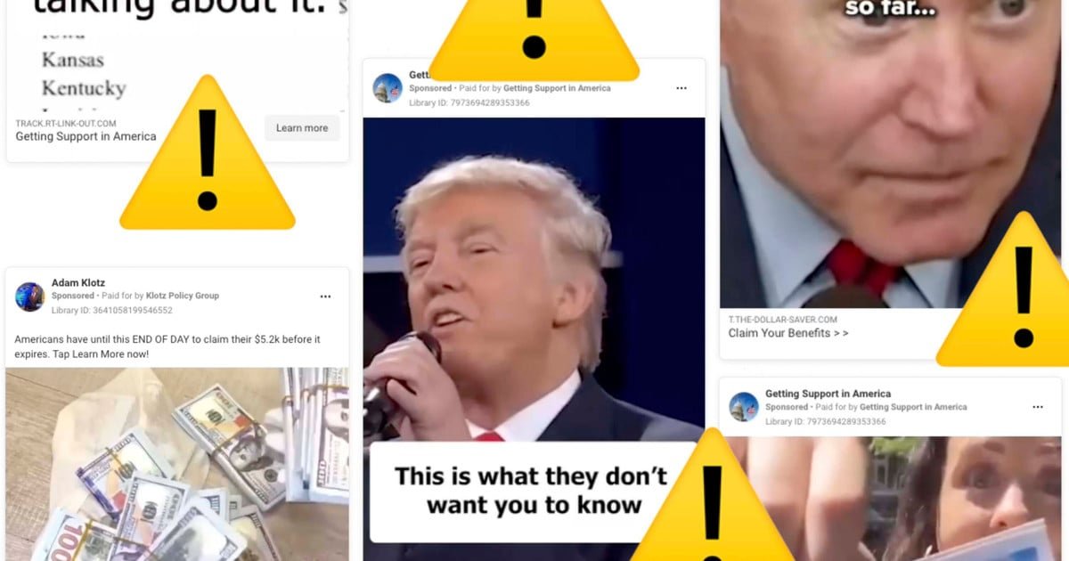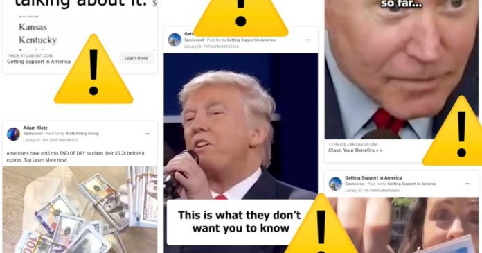 Some featured the distinctive voice of former President Donald Trump promising “$6,400 with your name on it, no payback required” just for clicking the ad and filling out a form.