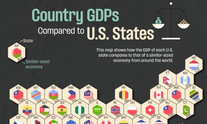 HomeMarkets Markets Mapped: U.S. State Economies Compared to Entire Countries By news November 5, 2024 0 303 FacebookTwitterPinterestWhatsApp Much like how the world has a few big economic players that dwarf the rest, so too does America’s $29 trillion economy. To put this unequal …This post was originally published on this site Share FacebookTwitterPinterestWhatsApp Subscribe Login Notify of new follow-up comments new replies to my comments Please login to comment 0 Comments Inline Feedbacks View all comments Stay Connected149,525FansLike396,312FollowersFollow2,650SubscribersSubscribe Latest Articles Markets The Global World Order Is Collapsing- And It’s Much Bigger Than Trump! Markets David Ellison Is Playing a Dangerous Game Markets Interesting Market Activity Noted Markets Trump’s EPA decides climate change doesn’t endanger public health – the evidence says otherwise Markets CPI Friday – Fear Drives the Market – Should We Buy This Dip? Climate Trump just killed the EPA’s ability to fight climate change. It may backfire. AI Swarms of AI bots can sway people’s beliefs – threatening democracy Biotech FDA rejects Moderna’s mRNA flu vaccine application – for reasons with no basis in the law AI Paul Krugman: No, AI Doesn’t Justify Lower Interest Rates Markets Fact Check Thursday – What is Really Going on in the Economy? AI What dating apps are really optimizing. Hint: it isn’t love Biotech Why is US health care still the most expensive in the world after decades of cost-cutting initiatives? Market News Federal Debt to Hit Record Levels, Budget Office Warns Biotech The FDA Refuses To Review Moderna’s Flu Vaccine Load more