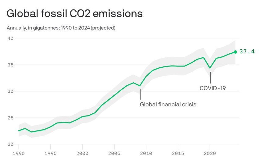 HomeMarkets Markets AntiCapitalist MeetUp: Global carbon emissions from fossil fuels hit record high this year By news November 24, 2024 0 170 FacebookTwitterPinterestWhatsApp Fierce urgency of now continues The Global Carbon Budget report, published during the U.N.’s COP29 climate summit in Azerbaijan, said global CO2 …This post was originally published on this site Share FacebookTwitterPinterestWhatsApp Subscribe Login Notify of new follow-up comments new replies to my comments Please login to comment 0 Comments Inline Feedbacks View all comments Stay Connected149,465FansLike396,312FollowersFollow2,650SubscribersSubscribe Latest Articles Markets Trump’s lethal presidency Markets Monday Market Mayhem – World War Trump and Portfolio Hedges Markets Deeply conflicted, Kushner represents the U.S. in high-stakes negotiations with Iran Markets Claude dethrones ChatGPT as top U.S. app after Pentagon saga Markets The Death of Khamenei and the End of an Era Markets Trump Says Iran’s Supreme Leader Is Dead Market News US‑Israeli attack on Iran risks plunging the world into turmoil (and my take) Markets Iran strikes were launched without approval from Congress, deeply dividing lawmakers Markets ☢️ World War Trump: The Pentagon Ultimatum – AI Weaponization and Constitutional Collapse Hot Items Zeihan: Attack on Iran Underway AI Anthropic CEO responds to Trump order, Pentagon clash Charts PSW’s Weekly Webinar: The State of the Markets Report (2/25/2026) AI Trump Orders Government to Stop Using Anthropic After Pentagon Standoff Markets Fall Back Friday – February Ending on a Week Note? Load more