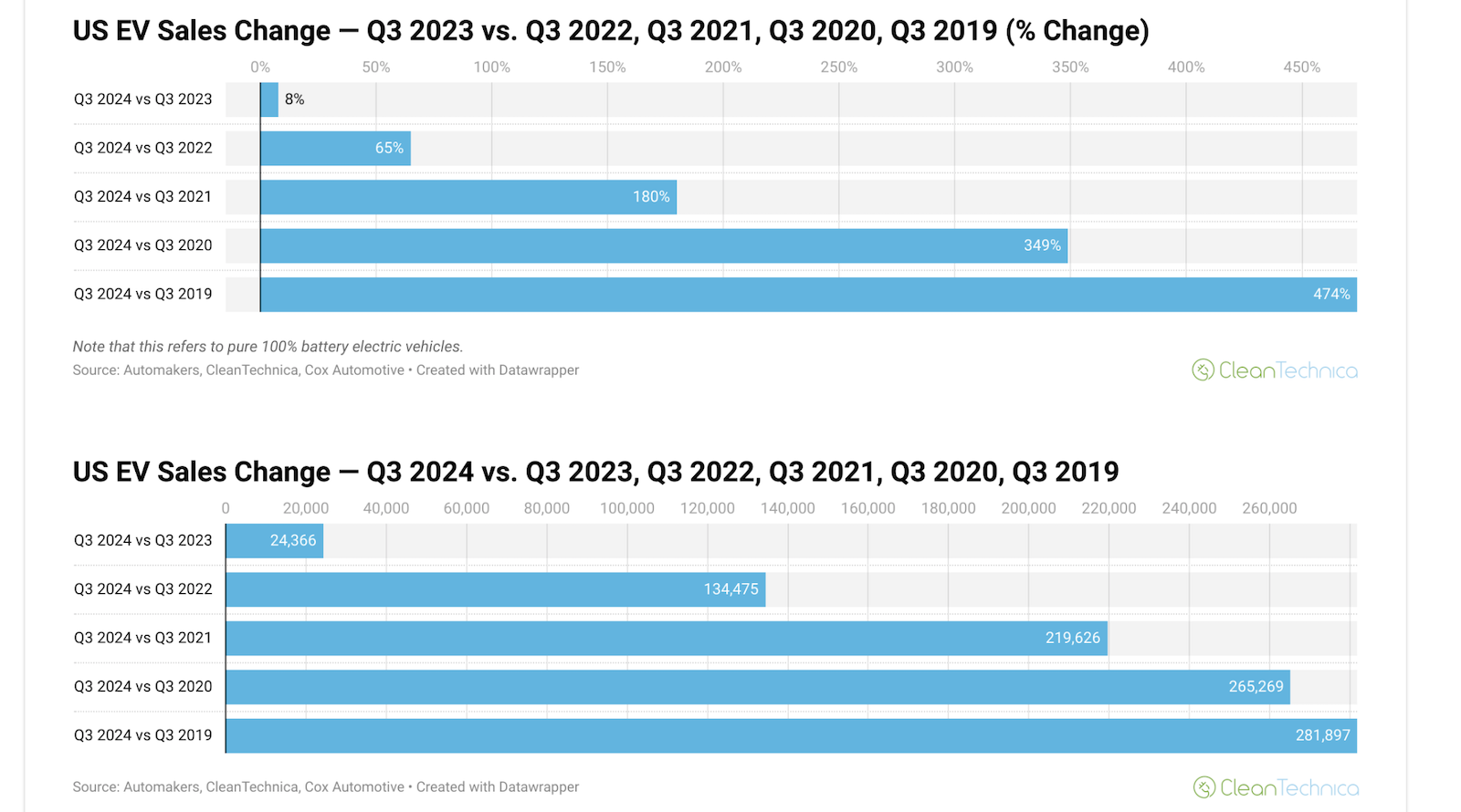 HomeMarkets Markets US Electric Car Sales Up 474% Since Q3 2019, Fossil Car Sales Down 15% By news December 30, 2024 0 83 FacebookTwitterPinterestWhatsApp I just published our big quarterly report on US auto sales trends in the past 5 years, including brand-specific trends. However, I’ve done something …This post was originally published on this site Share FacebookTwitterPinterestWhatsApp Subscribe Login Notify of new follow-up comments new replies to my comments Please login to comment 0 Comments Inline Feedbacks View all comments Stay Connected149,461FansLike396,312FollowersFollow2,650SubscribersSubscribe Latest Articles Markets The SaaSpocalypse Has Arrived…Or Has It? Markets Trump’s lethal presidency Markets Monday Market Mayhem – World War Trump and Portfolio Hedges Markets Deeply conflicted, Kushner represents the U.S. in high-stakes negotiations with Iran Markets Claude dethrones ChatGPT as top U.S. app after Pentagon saga Markets The Death of Khamenei and the End of an Era Markets Trump Says Iran’s Supreme Leader Is Dead Market News US‑Israeli attack on Iran risks plunging the world into turmoil Markets Iran strikes were launched without approval from Congress, deeply dividing lawmakers Markets ☢️ World War Trump: The Pentagon Ultimatum – AI Weaponization and Constitutional Collapse Hot Items Zeihan: Attack on Iran Underway AI Anthropic CEO responds to Trump order, Pentagon clash Charts PSW’s Weekly Webinar: The State of the Markets Report (2/25/2026) AI Trump Orders Government to Stop Using Anthropic After Pentagon Standoff Load more