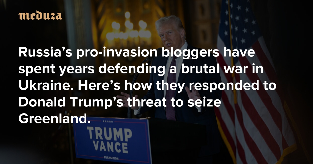 ‘America has legitimized redrawing the world map’ Russia’s pro-invasion bloggers have spent years defending a brutal war in Ukraine. Here’s how they responded to Donald Trump’s threat to seize Greenland. — Meduza