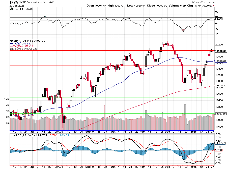 Now, getting back to the indexes, like the S&P 500, the NYSE is testing a critical level at 20,000, which is also the top of our expected range and, as you can see, the RSI is at 65.35, which is close to 70, which is a very reliable point that indicates the index is overbought. At the bottom of the chart, the MACD indicator also looks a bit overbought and, like the S&P 500, 20,000 is also about 30x in the NYSE and paying 30x for an index is BONKERS (the technical term).