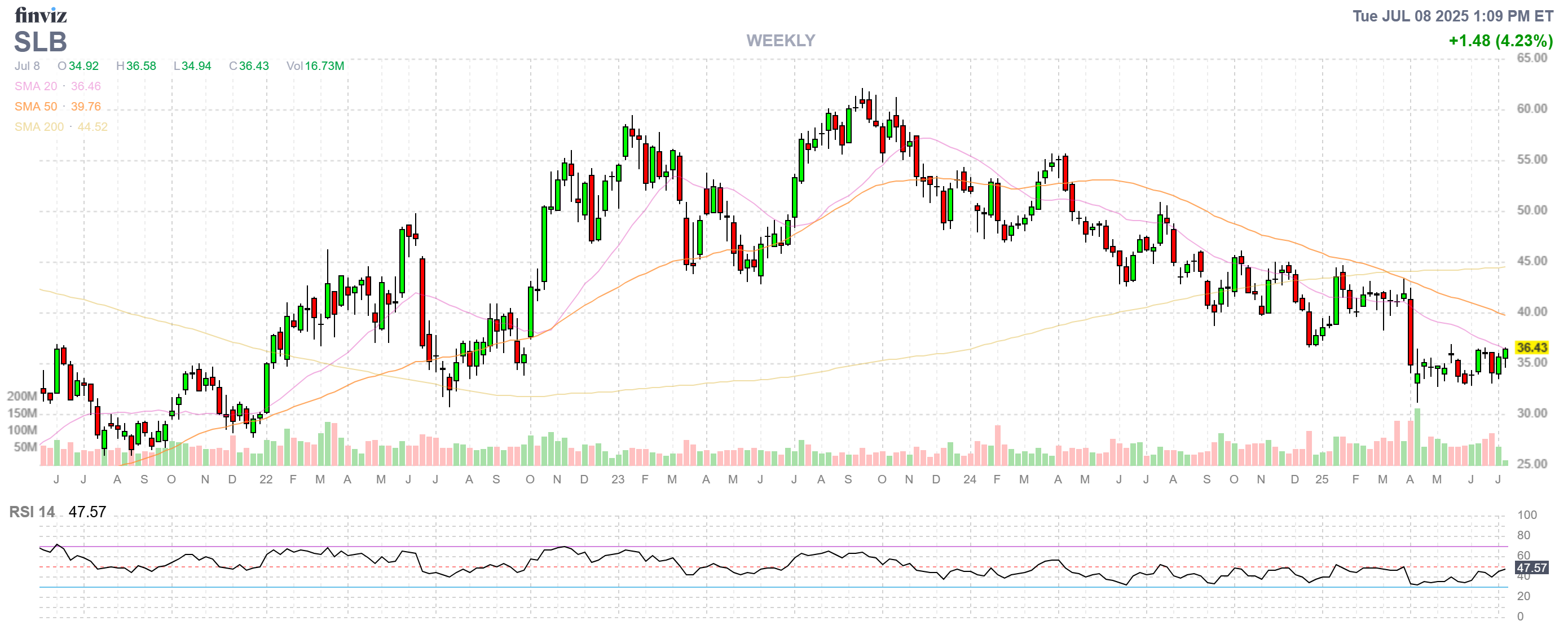 • Sell 5 SLB 2027 $37.50 puts for $5.80 ($2,900)