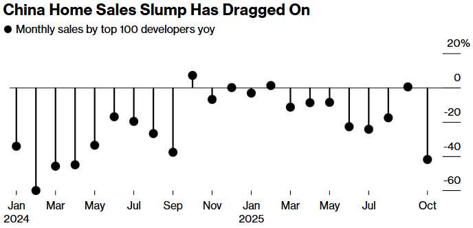 In October, China Real Estate Information’s reading suggested new home sales for the country’s top 100 builders slumped 41.9% from a year earlier, the biggest monthly drop in 18 months and November was looking like it would be worse but now it’s a HUGE IMPROVEMENT due to lack of data – just like the US Economy!