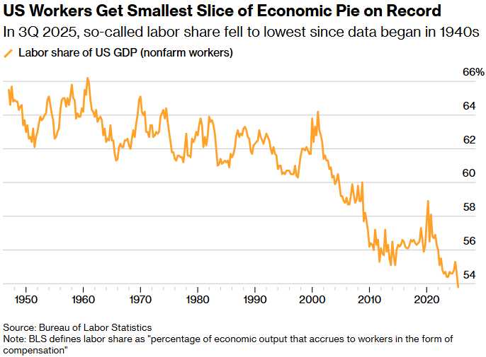 Now, let’s layer in Productivity. In Q3 2025, Non-Farm Business Labor Productivity jumped 4.9% annualized while Real GDP grew at a 4.4% annualized rate – the fastest in about two years. That sounds great – IF the gains were broadly shared. But Hourly Compensation was only rising in the 4–5% range and unit labor costs in key sectors were up barely 1.2% (and DOWN 1.9% for the recent quarter!) – meaning MOST of the Productivity gain is flowing to margins and asset owners – NOT to workers who are struggling to keep up with rising prices.