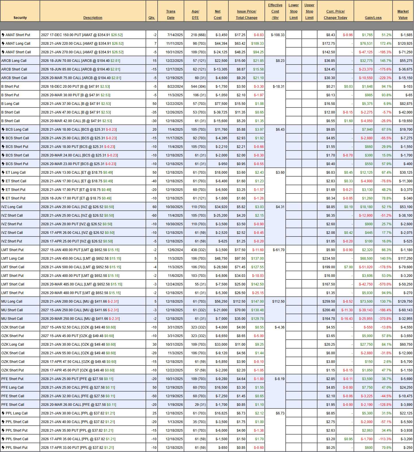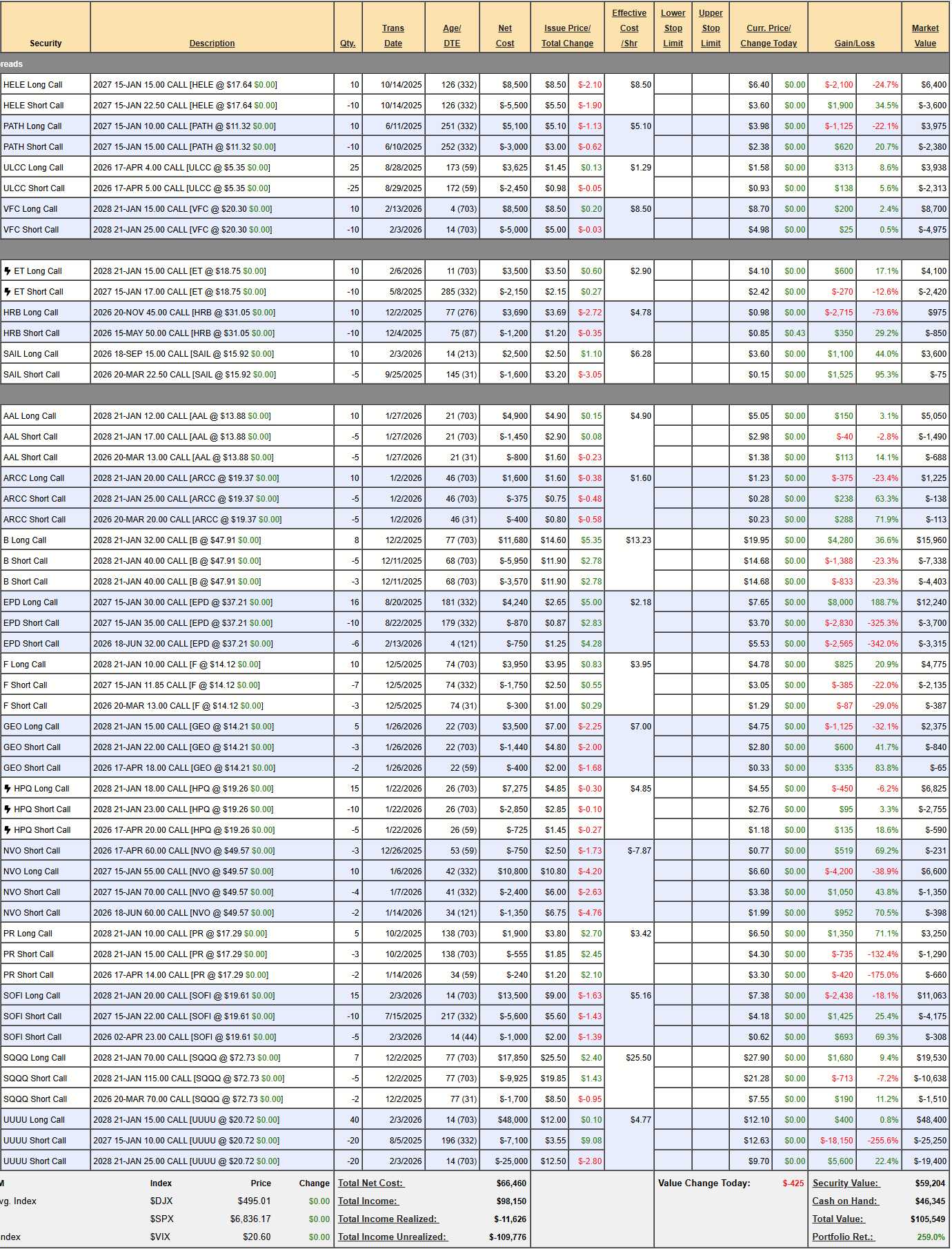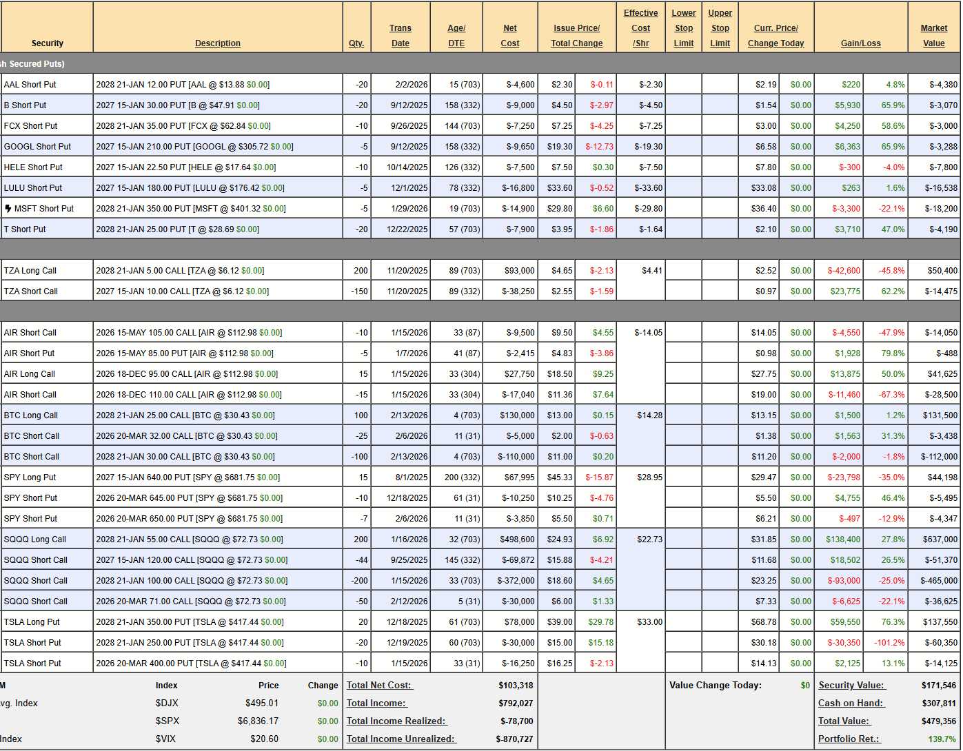 Money Talk Portfolio Review: We can only adjust this portfolio on Bloomberg’s Money Talk show and I was last on on Dec 16th (way back in 2025) and last month we were at $397,249, which was up 297% since we began this “new” portfolio with $100,000 on Aug 21st, 2024 (the previous one hit $1M so we started a new one). I’ll be back on the show March 18th and we will likely make some changes then.