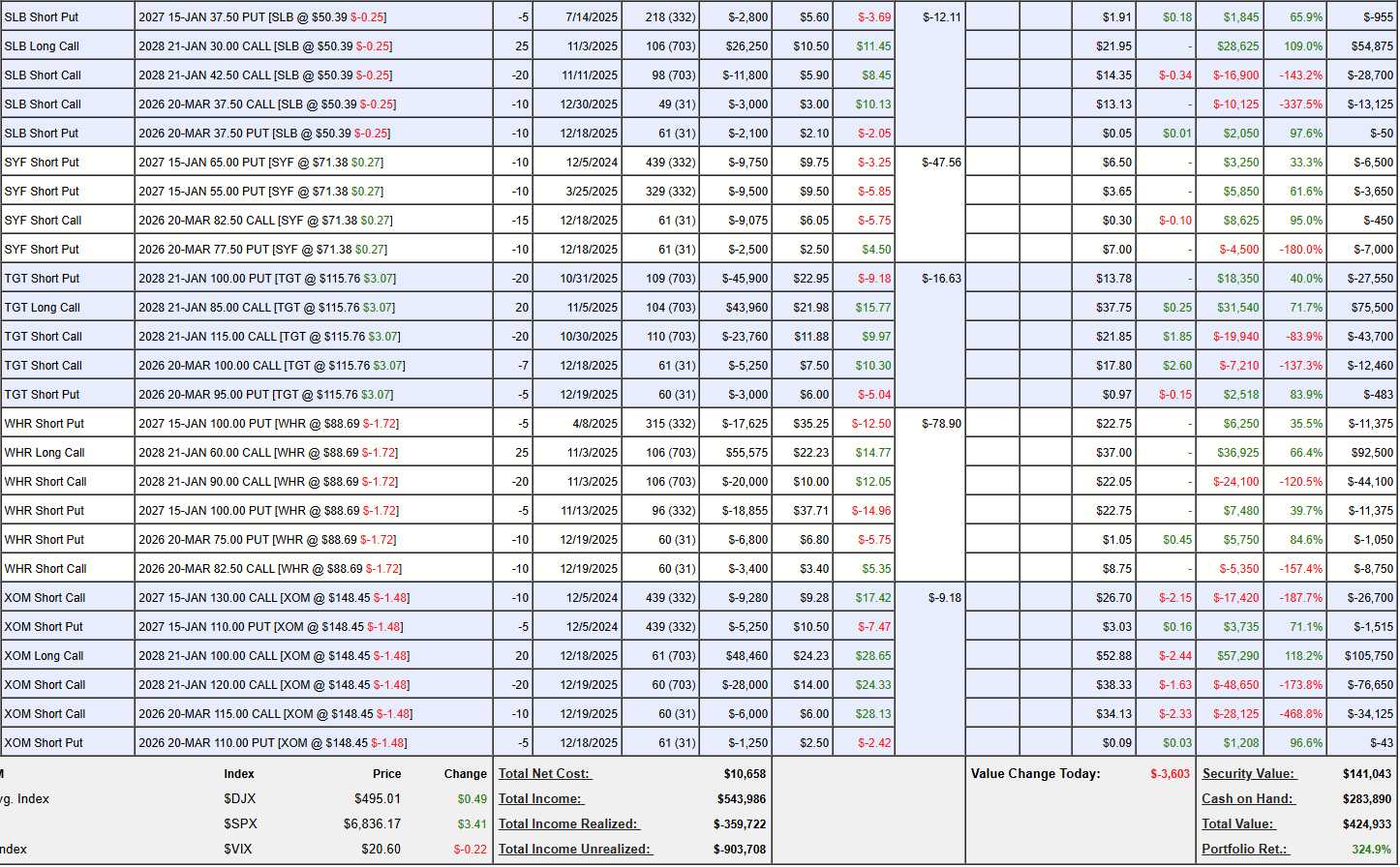 | SLB | 2028 $42.5/30 spread | +$3,595 | Existing |
