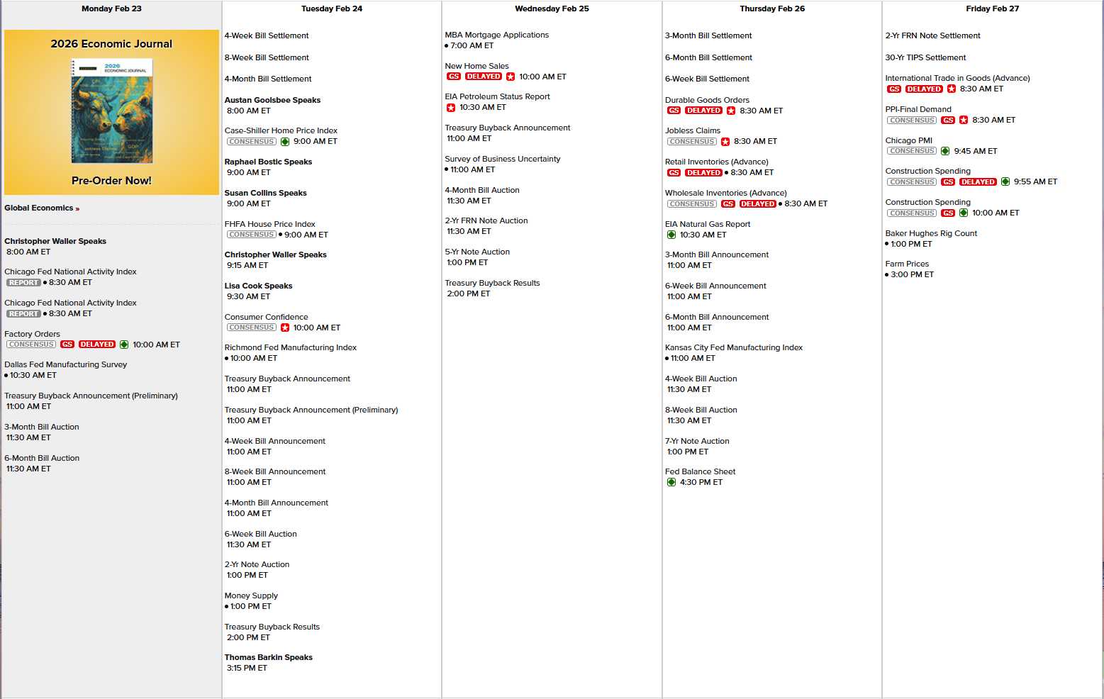 Lots of other data this week as we close out February with Chicago and Dallas Fed Reports this morning and, as usual, a couple of hundred Billion Dollars worth of Treasury auctions because Trump needs money! There’s Housing Data and we’ll see how uncertain Businesses are on Wednesday and Thursday is Durable Goods and Friday is PMI, Construction Spending and Farm Prices and we have 7 scheduled Fed speakers today and tomorrow (mostly tomorrow) but that’s it for the week: