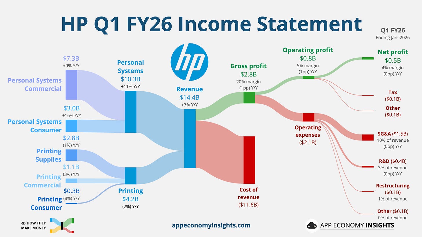 HPQ last night, reported DRAM/NAND costs surging with memory+storage now accounting for 35% of their PC costs – up from 17% last year (so DOUBLE) with ADDITIONAL price hikes expected. So far, the company has been able to pass the costs along to Consumers but, then again, we don’t see a lot of bottom 80% Consumers rushing out to buy new PCs, do we?