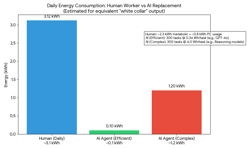 But—and this is the uncomfortable bit—that efficiency gain only materializes if the human stops consuming energy!