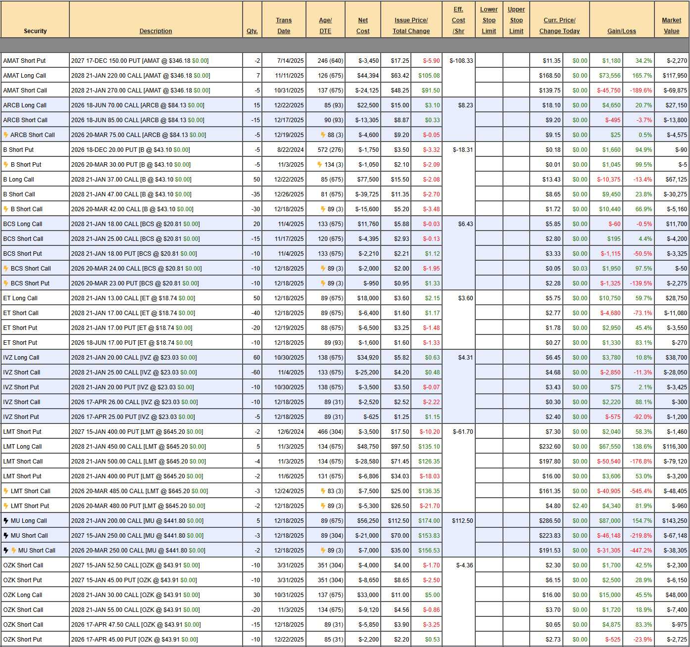 Money Talk Portfolio Review: We can only adjust this portfolio on Bloomberg’s Money Talk show and I was last on on Dec 16th (way back in 2025) and we were at $346,437, which was up 246% since we began this “new” portfolio with $100,000 on Aug 21st, 2024 (the previous one hit $1M so we started a new one). I’ll be back on the show March 25th and we will likely make some changes then.