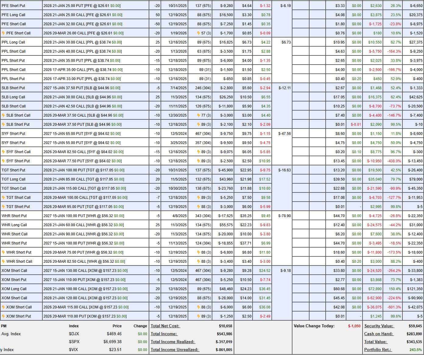 | XOM | 2028 $120/100 spread | +$9,990 | -$2,748 |