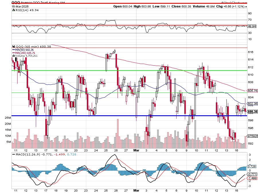 The QQQ ETF is right on the cusp of the 600 line as $1Tn in projected orders did not move the needle on NVDA (15% of the Nasdaq) and AAPL (12%) is languishing at $250 while MSFT has slipped under $400 and $2.9Tn is a pathetic 8% of the Nasdaq 100 with GOOGL $300 the same 12% as AAPL and AMZN is not even 7% of the Nasdaq at $2.3Tn with TSLA bringing up the rear of the Mag 7 at $1.5Tn ($400), which is just 4.4% – tied with META – who used to be a contender but have gone nowhere in the Trump error.