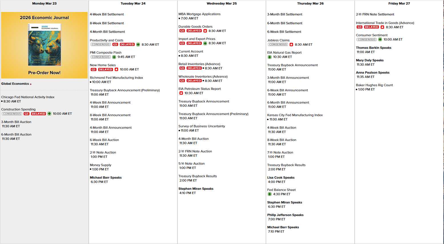 The NY Times this morning noted Asian stocks were falling and oil was rising before the Truth Social post – the pre-dawn reality was the fourth straight week of war turmoil. The Dow’s 1,500-point whipsaw in 20 minutes on a single unverified Truth Social post is a perfect demonstration of what Reuters’ Wall Street Week Ahead piece called the core problem: the S&P 500 has now dropped four consecutive weeks and sits at a 6-month low.