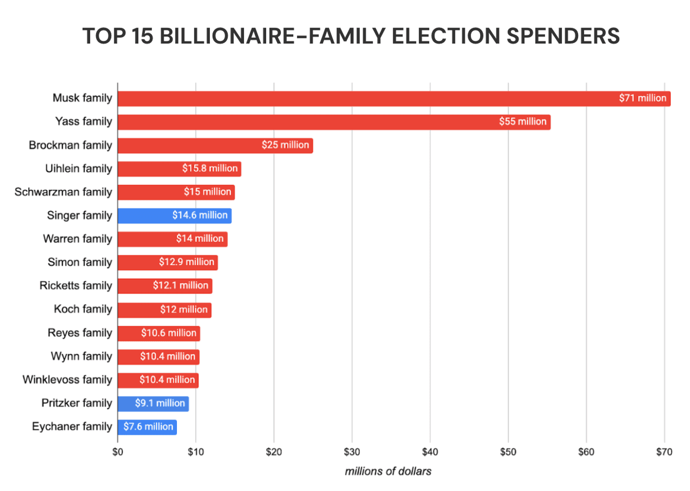Combined, the 50 top-spending billionaire families—which ATF describes as “modern-day royalty”—have poured $433 million into the 2026 midterms to date.