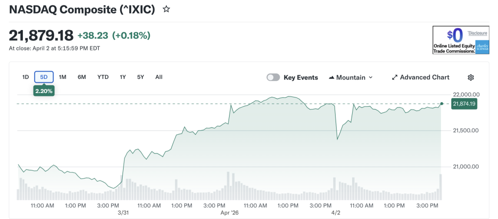 The Nasdaq surged nearly 4%. The Dow jumped. Screens lit up green.