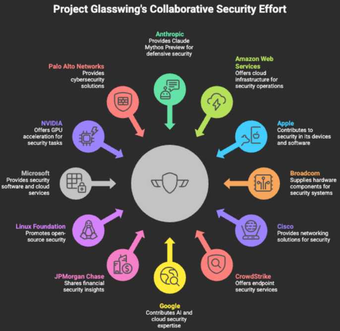 On Tuesday, April 7th, Anthropic officially unveiled Mythos through something called Project Glasswing — a defensive cybersecurity consortium. The idea, in theory, is noble: give the good guys a head start. Let the major companies scan their own systems for vulnerabilities before bad actors develop similar capabilities. The launch partners are Amazon Web Services, Apple, Microsoft, Google, Nvidia, Cisco, CrowdStrike, JPMorgan Chase, Palo Alto Networks, and Broadcom – plus about 40 additional organizations that maintain critical software infrastructure.