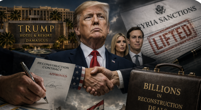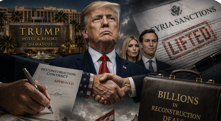 The story itself is simple. A wealthy Syrian-origin family positioned itself to profit from rebuilding a war-torn country. To make that possible, they needed U.S. sanctions lifted. At the same time, they were building relationships with the family of the president—exploring a Trump-branded resort in Syria and a separate joint development deal abroad with Jared Kushner and Ivanka Trump.